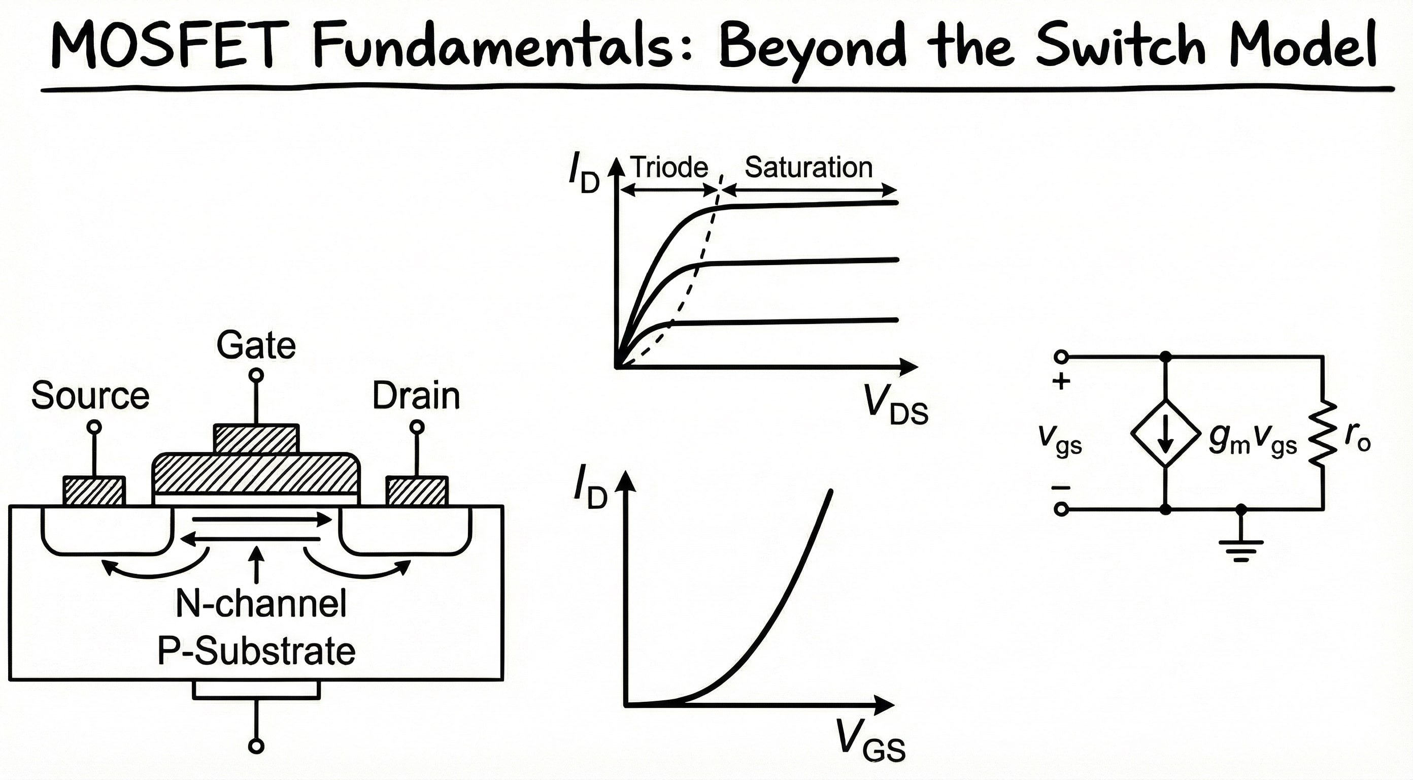 In the last post, I discussed my decision to return to school to stop treating the schematic like a black box. Today, we are opening that box. We are going back to the fundamental building block: the MOSFET. To really understand design, we need to look at how a MOSFET turns on and the equations that govern it.